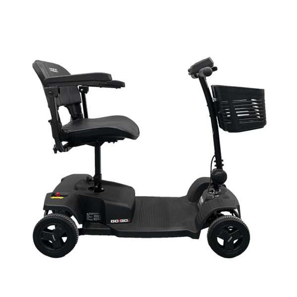Get wherever you need to go on the GoGo®e mobility scooter. Streamlined steering controls guarantee user-friendly operation. Equipped with a front basket for added convenience and a comfortable seat, the GoGo®e is the perfect cost-effective choice for individuals seeking a straightforward solution for urban travel on paved paths and sidewalks.